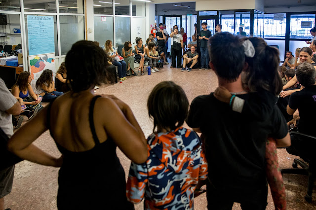 En el día de hoy se encontrarán en dicha sede, con un petitorio por la reincorporación de los trabajadores despedidos en salvaguarda de la educación pública. A las 20hs como actividad se llevará a cabo Cine a la Carta, proyección de una película bajo las estrellas.