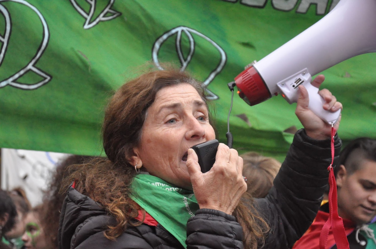 María Julia tiene 57 años, los ojos claros y una mirada amorosa. Sostiene su pelo enrulado en una media cola. Es feminista y militante en La Plata de la Campaña Nacional por el Derecho al Aborto Legal, Seguro y Gratuito. Muches la reconocen como referente histórica, y es que se acercó a la Campaña en 2005, desde Las Azucenas.