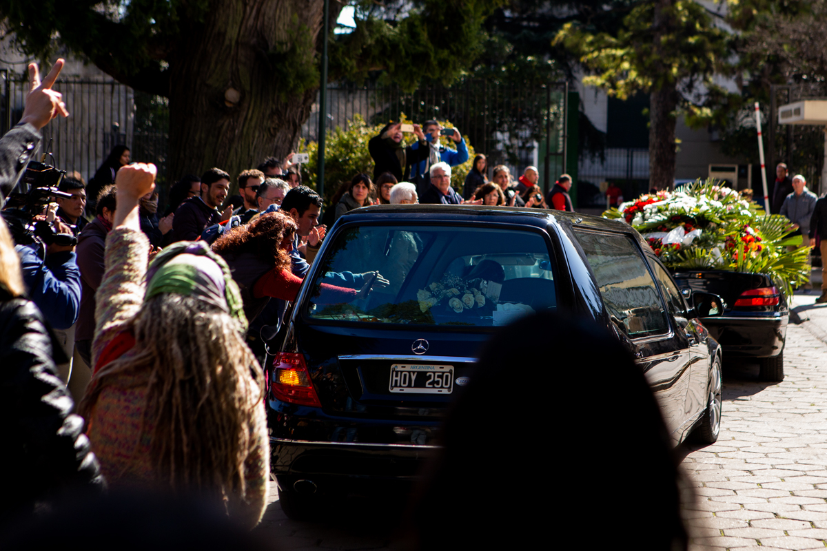 Se cierra el ataúd y de casi todos los rostros brotan las lágrimas. Norberto Liwski, Juan Martín y Alejo Ramos Padilla, Victoria Moyano Artigas, Paula Logares y otros militantes avanzan con el féretro entre la gente, que aplaude y llora a su paso.