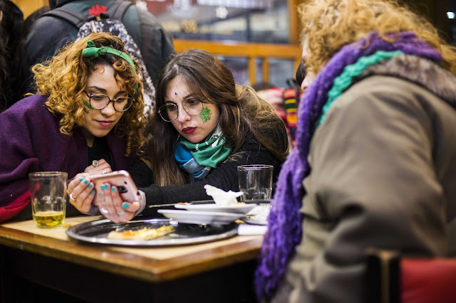 Todes ríen del fracaso del accionar violento y ríen aún más cuando la señora finge llamar a la policía. No tendrá éxito, porque no hay señal. Es casi imposible la comunicación telefónica en las inmediaciones del Congreso, pero hay otros vínculos: los abrazos, las risas, el amor, la amistad, la alegría de encontrarse en las calles para reclamar a los senadores la aprobación de la Ley de Interrupción Voluntaria del Embarazo.