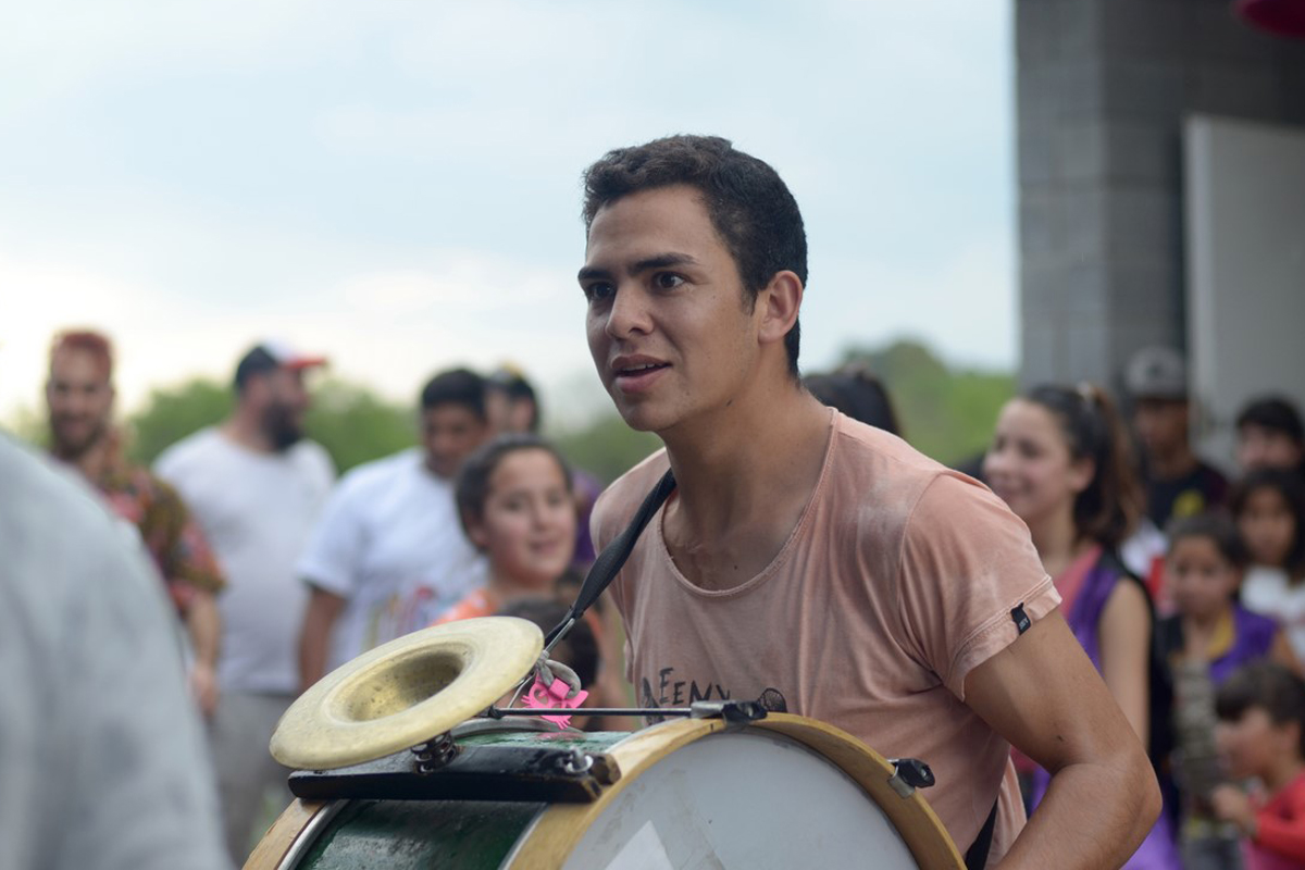 La murga identifica los encuentros de la Coordinadora. Diego (Centro Vecinal El Triunfo) marca el ritmo y recuerda que no hay lugar para olvidar la alegría.