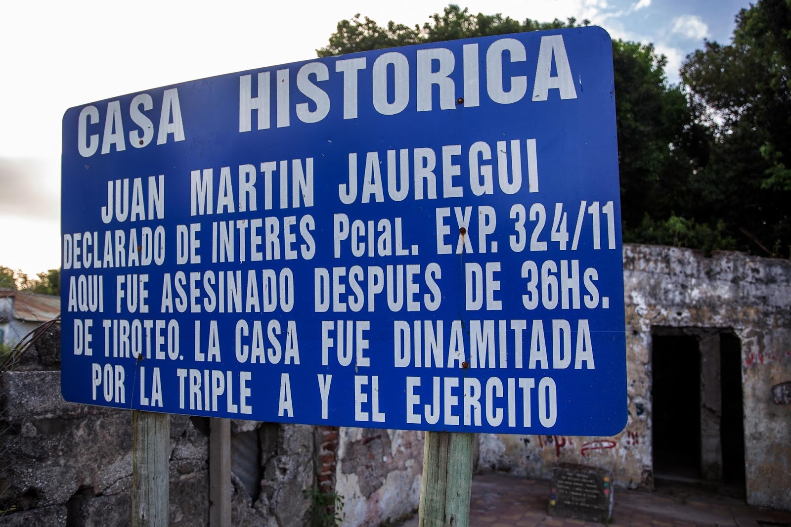 Según consta en el expediente, los efectivos pidieron la presencia de un experto en explosivos. Al lugar arribó el Subinspector Mariano Meroni quien, al querer abrir la puerta de la casa del Negro Jáuregui, recibió una perdigonada.