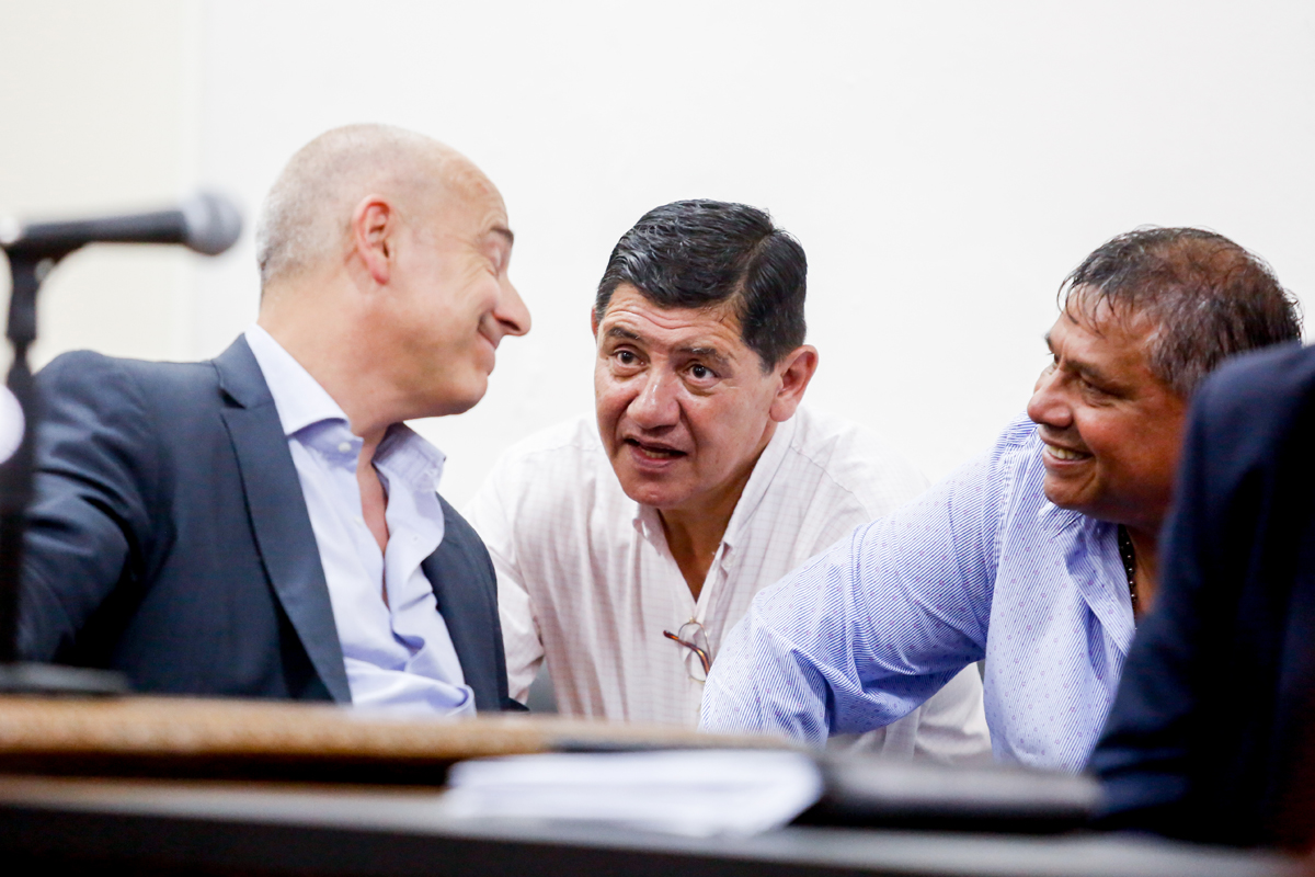 | Uno de los imputados sonríe con el defensor oficial, Claudio Ritter. Adhemar. |