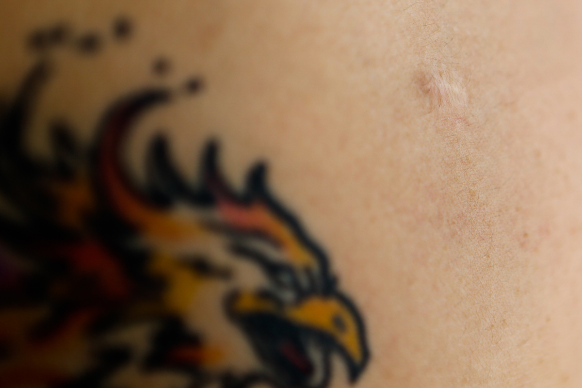 Cobo enseña una de las cicatrices que le quedaron después de la operación