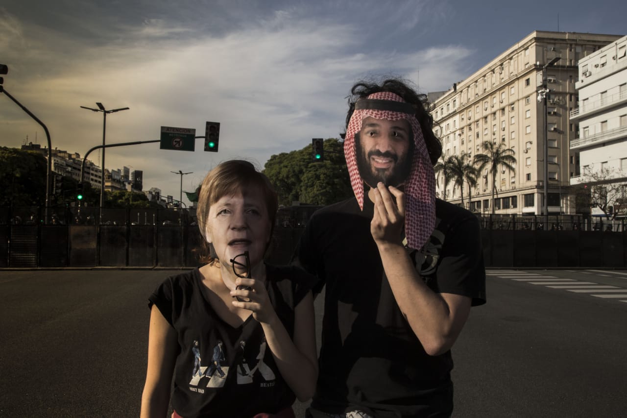 | Merkel (Alemania) y Bin Salmán, príncipe de Arabia Saudita |