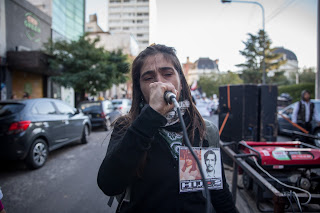 El último lunes organizaciones de Derechos Humanos se concentraron en Plaza San Martín para luego movilizar a la casa donde el genocida Leopoldo Baume goza del beneficio de la prisión domiciliaria. Desde temprano, efectivo policiales se acercaron a 49 entre 12 y 13 para formar un cordón y evitar pintadas en el edificio.