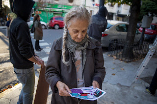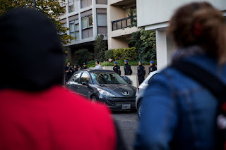 El último lunes organizaciones de Derechos Humanos se concentraron en Plaza San Martín para luego movilizar a la casa donde el genocida Leopoldo Baume goza del beneficio de la prisión domiciliaria. Desde temprano, efectivo policiales se acercaron a 49 entre 12 y 13 para formar un cordón y evitar pintadas en el edificio.